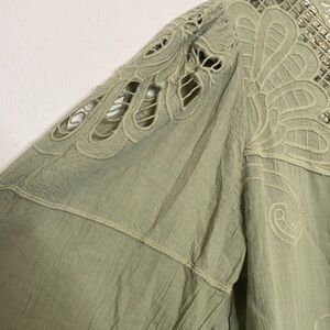 Unbranded Women's Green Balloon Sleeve Embroidered Sheer Blouse size Large
