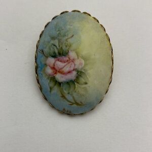 Unbranded Women's Hand Painted Roses Blue Flowers Porcelain Brooch