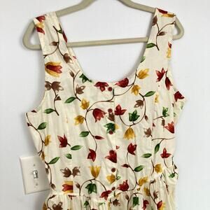 Unbranded Womens L White Autumn Floral Pocket Midi Dress Twee Romantic Feminine