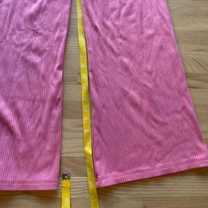 Bubblegum pink boxy fit cropped top and wide leg pant ribbed cotton lounge set with elastic waist pants and dolman cuffed sleeves. This is a very nice, heavy ribbed cotton. Quiet luxury is whispering.