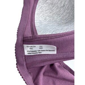 Designed for comfort and support, this purple bra features a front closure with a floral pattern. The cotton blend fabric ensures a soft feel.