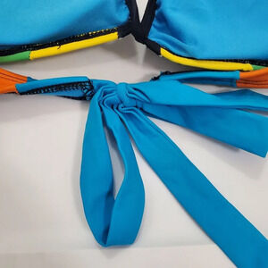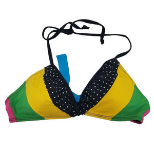 Unbranded Women's Retro Mixed Colorblock Polka Dot Print Halter Bikini Top Sz S