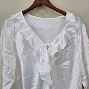 Unbranded Womens Silky Blouse Plus Size 2X White Ruffled Classic Angelcore Solid