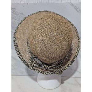 Unbranded Women's Tan & Black Leopard Print Trim & Band Natural Straw Fiber Hat