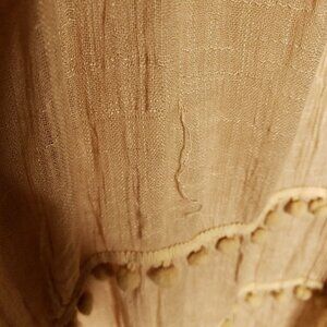 Unbranded women’s cream tan scarf with pom pom detail OS. Gently used condition, there are a few pulls in fabric.