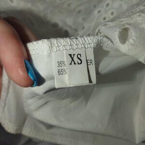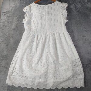 Unbranded Women's XS White Summer Romper Eyelet Lace Scallop Hem Ruffle Sleeves
