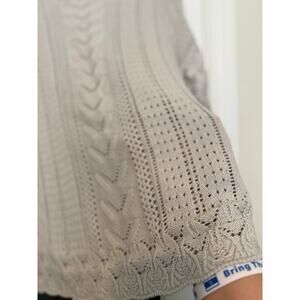 Unbranded Womens beige Crochet Lack Drop Shoulder Pointelle Knit Sweater Size small