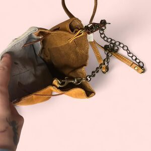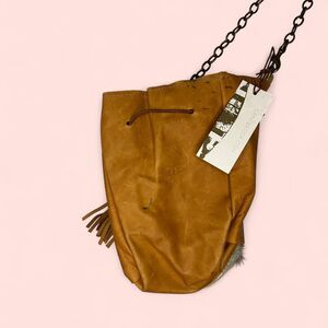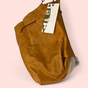Tan and brown leather cowhide bag with faux fur trim and tassle #boho #western