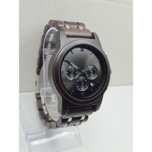 Unbranded Wooden Watch Quartz Chronograph Date Brown Dial New Battery 44 mm Mens