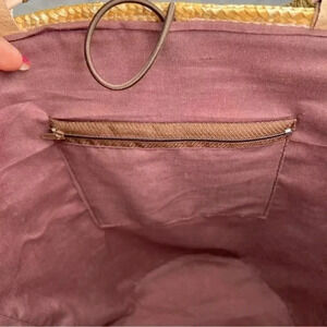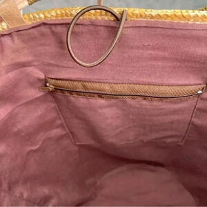 Unbranded Woven Natural Straw Raffia Beach Large Lined Floral Sequins Tote Basket, Button Closure.