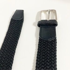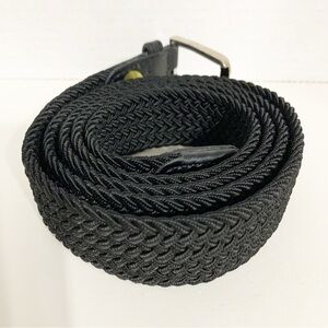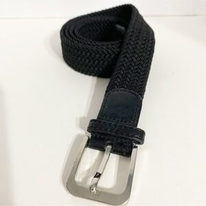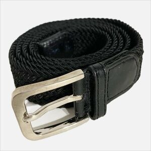Unbranded Woven Stretch Herringbone Elastic Belt Silver Toned Hardware Faux Leather