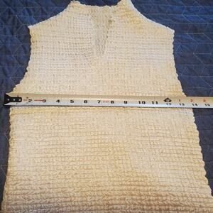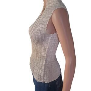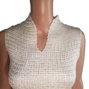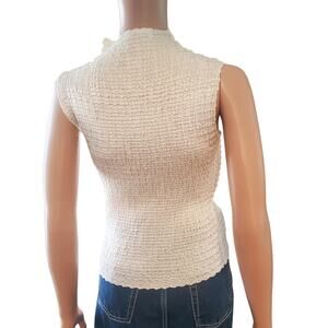 Unbranded Y2K Size S shirred crinkled top in cream high split v neck collar sleeveless blouse