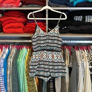 Unbranded black/white/pink/blue print v neck adjustable strap romper S