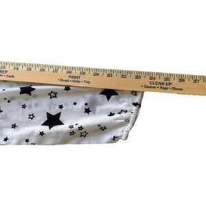 Celestial star-print blouse in white/black with a deep V neckline and attached choker/mock neck. Long sleeves with elastic cuffs; lightweight woven poly that’s soft and slightly sheer. Trend-right Y2K / whimsygoth / celestial vibe. Allover stars pattern. Condition: Gently used