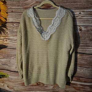 Unbranded long sleeve sweater top women's 1X tan/white pre-owned