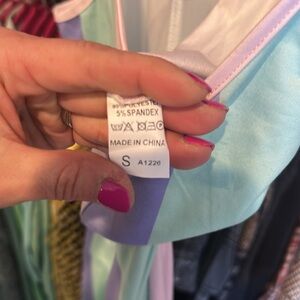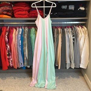 Unbranded pink/mint/purple striped sleeveless adjustable strap jumpsuit size S
