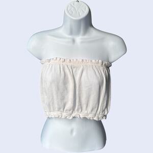Unbranded smocked ruffle bandeau tube top white cropped lettuce edge y2k