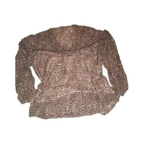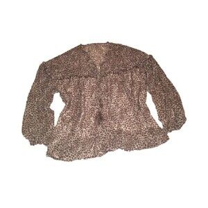 Unbranded top Womens 2XL brown sheer cheetah long sleeve ruffle Coastal Cowgirl