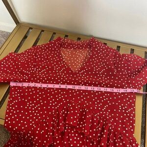 Unbranded Red Polka Dot/Ruffle Dress. Closest to size M/L. Measurements in pictures.