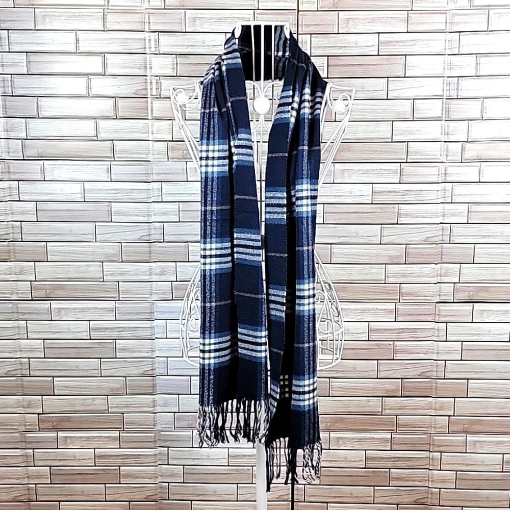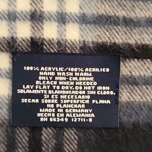 100% Acrylic tartan plaid in a soft flannel like fabric with fringe detail. Good pre-owned condition