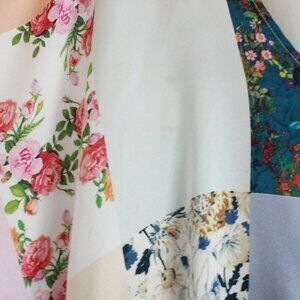 Unbreak.it Patchwork Flowers Print Silk Flare Sleeve Blouse