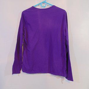 Unbraded (believe it is from Walmart) long sleeve 16/18 Halloween shirt. Purle with Orange moon, witch, and bat graphics on front. crew neck 20 1/2" pit to pit, 25" back collar to hem. Great condition. Please see pictures for greater details.