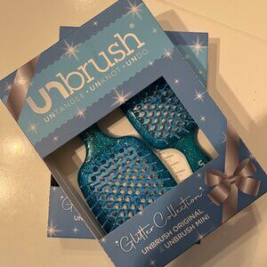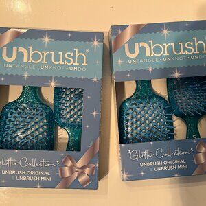 This is a listing for two glitter collection gift set that include an unbrush original and unbrush mini. These are blue glitter in color.