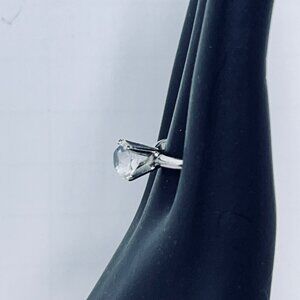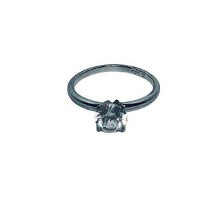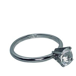 Uncas Silver Tone Solitaire CZ High Prong Engagement Ring Signed Sz 9 (R1)