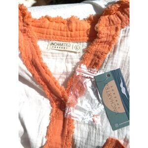 Uncharted Threads Raw Hem Shirt NEW Light Gauze Button Up L Boho Lagenlook