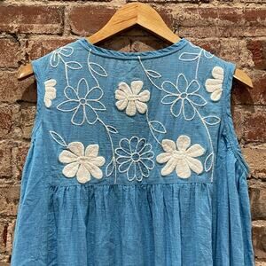 Uncle Frank 100% Cotton Embroidered Floral Mini Dress Size Small