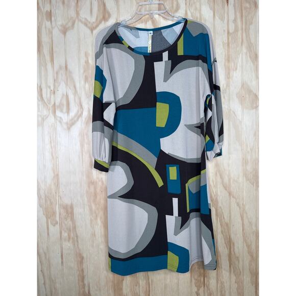 Uncle Frank Abstract Geometric Shift Dress size Small Green Grey Black Tan