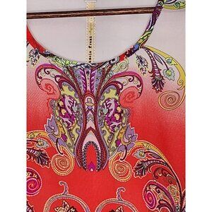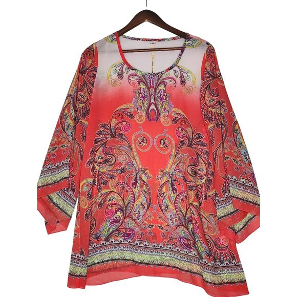 Uncle Frank Bell Sleeve Tunic Top Size Med Paisley Coral Color