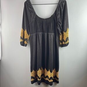 Uncle Frank Black and Gold Embroidered Boho Dress Size M