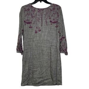 Uncle Frank Dress Size Small Gray Purple Floral Embroidery Pockets Linen Blend