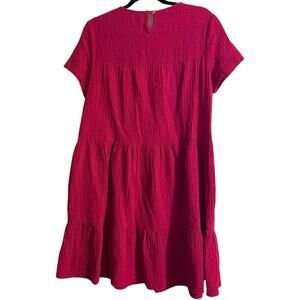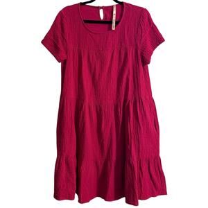 Uncle Frank Magenta Pink Short Sleeve Swiss Dot Tiered Dress with Pockets Small