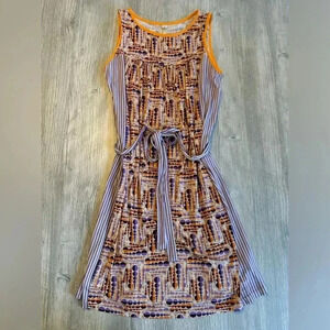 Uncle Frank Women's Size Small Dress Blue Multi Color Circles Artsy Belt Modern