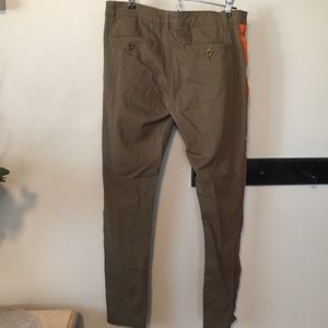 Olive green with orange stripe down both sides of legs Men’s size large 98% cotton