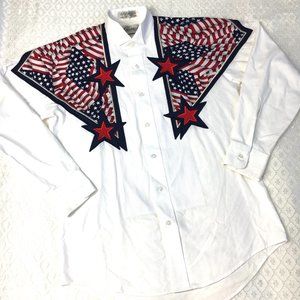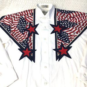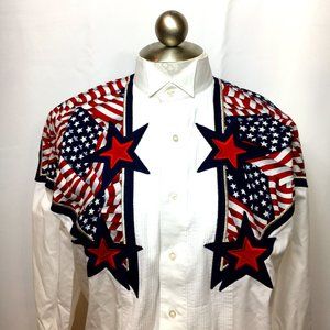 Vtg Mens Tux Shirt – Red, White and Blue Applique Scarf