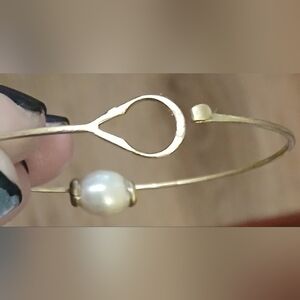 925 silver bracelet wiyh a 14kt gold. I dont know if it's plated, filled or soild. it is 10mm natural Akoya white Pearl .Piece is by Uncommon James jewlers. Features a lustrous pearl centerpiece. Ideal for elevating any look. My wrist is 7 inches round and fits me perfectly. So fits the average 7 to 8 inch wrist.