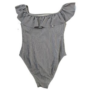 Uncommon Sense Blue & White Striped Ruffle One Piece Swim Suit Size Large