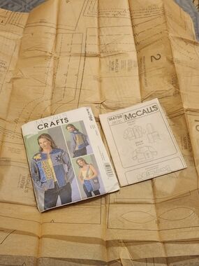 Uncut pattern. women's patchwork jacket in blue tones. Features mixed blue prints with yellow heart and floral accents. Lightweight, casual design with button-front and decorative patch details. Perfect for adding a playful, colorful layer to everyday outfits.