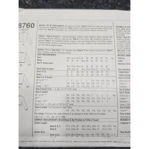 Uncut Simplicity 3 Hour Jacket Sewing Pattern in Size P (12, 14, 16), Pattern #8