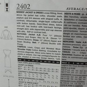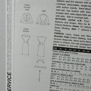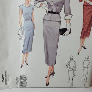 This is a vintage 2001 limited edition, discontinued and out of print sewing pattern reprint of a elegant1950's jacket and dress set, graded for modern sizing.