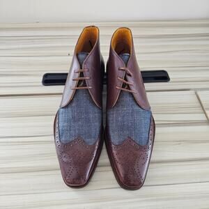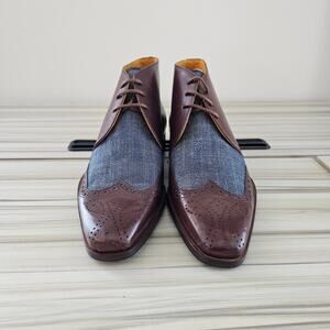 Undandy Men's Brown Denim Chukka Ankle Lace up Leather Boots Size 38