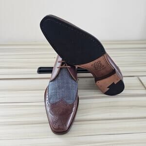 Undandy Men's Brown Denim Ankle Lace up Leather Boots Size 38