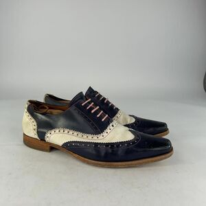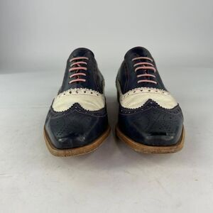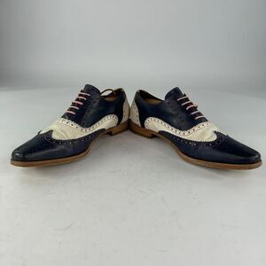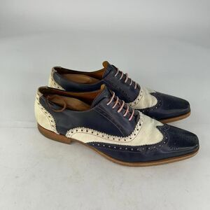 Undandy Mens Oxford Wingtip Brocade Dress Shoes US 11 Navy Beige Leather Brogue