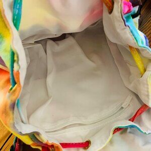 Beautiful tie-dye with the peace sign in the front. Great condition and very clean inside.