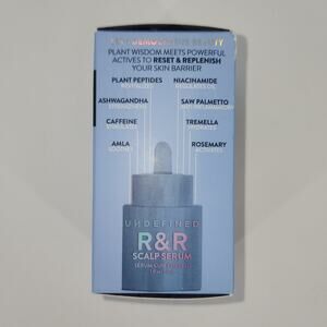 Nourish and revitalize your scalp with Undefined Beauty R&R Scalp Serum. This plant-powered formula blends potent botanicals like plant peptides, niacinamide, caffeine, ashwagandha, and rosemary to stimulate, strengthen, and hydrate the scalp while supporting a healthy skin barrier. Designed for all hair textures, this serum helps regulate oil production, soothe irritation, and encourage optimal scalp health.