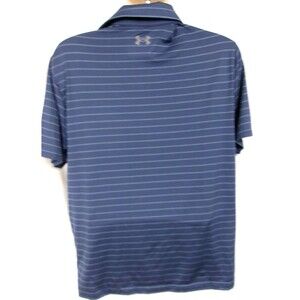 Under Amour The Playoff Polo Shirt Blue Striped Short Sleeve Men's Size Large