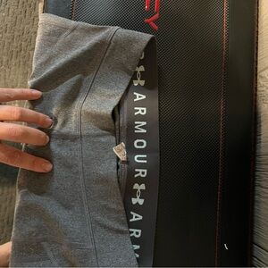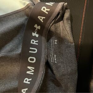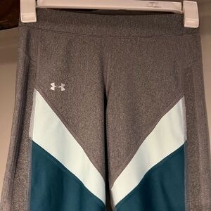 Under Armour leggings in gray and teal. Ideal for active wear.